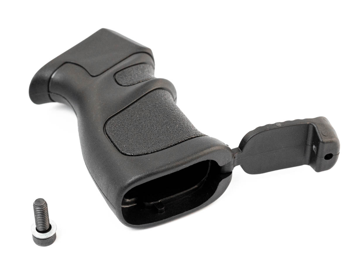 Рукоятка удобно ложится в ладонь, снижая нагрузку на кисть стрелка. Внутри находится отсек с откидывающейся крышкой для хранения мелких аксессуаров.
